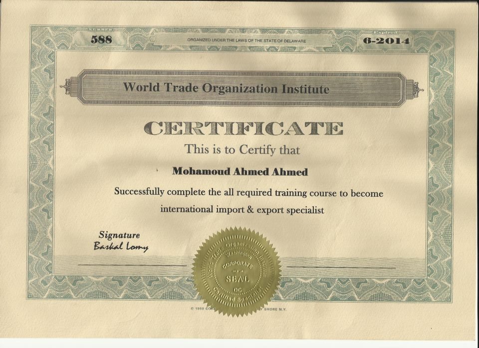 1. احصل على شهادة اخصائى تخليص جمركى معتمدة من معهد منظمة التجارة العالمية.